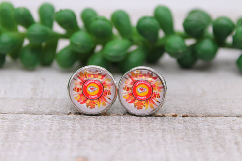 KC Chiefs Football - Feathers || 12mm Glass Stud Earrings || Hypoallergenic